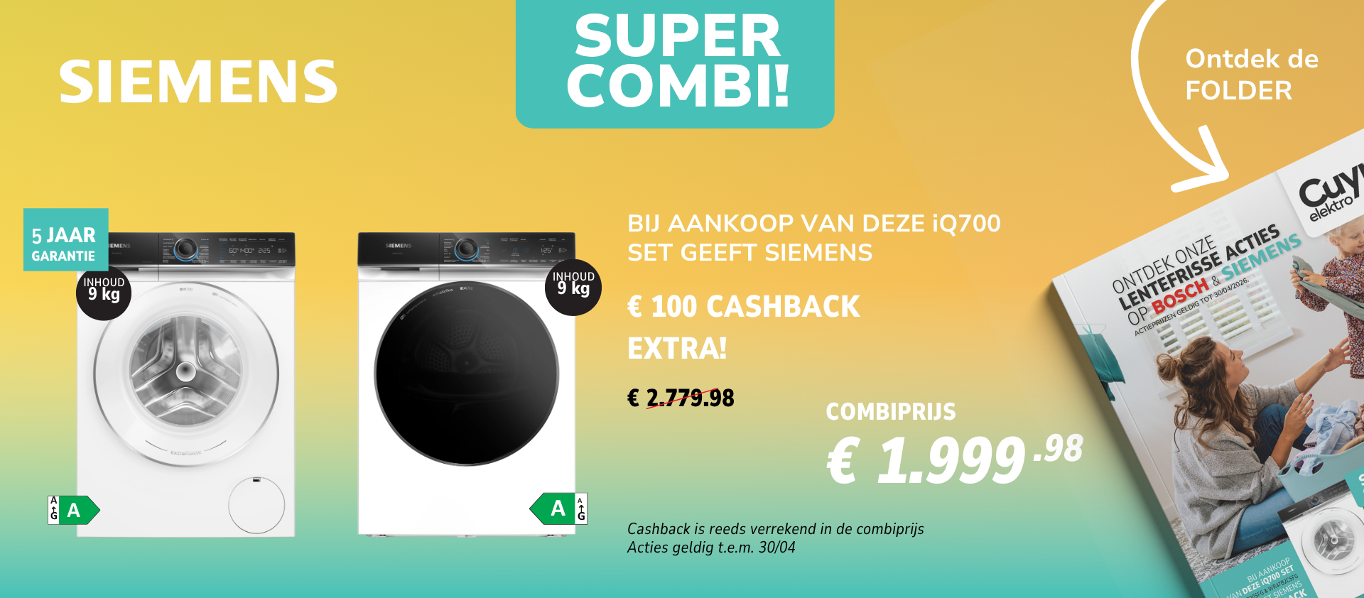 Profiteer bij Elektro Cuypers van hoge kortingen op toestellen van BOSCH & SIEMENS. Naast hoge kortingen krijg je bijkomend nog cashbacks tot €100.